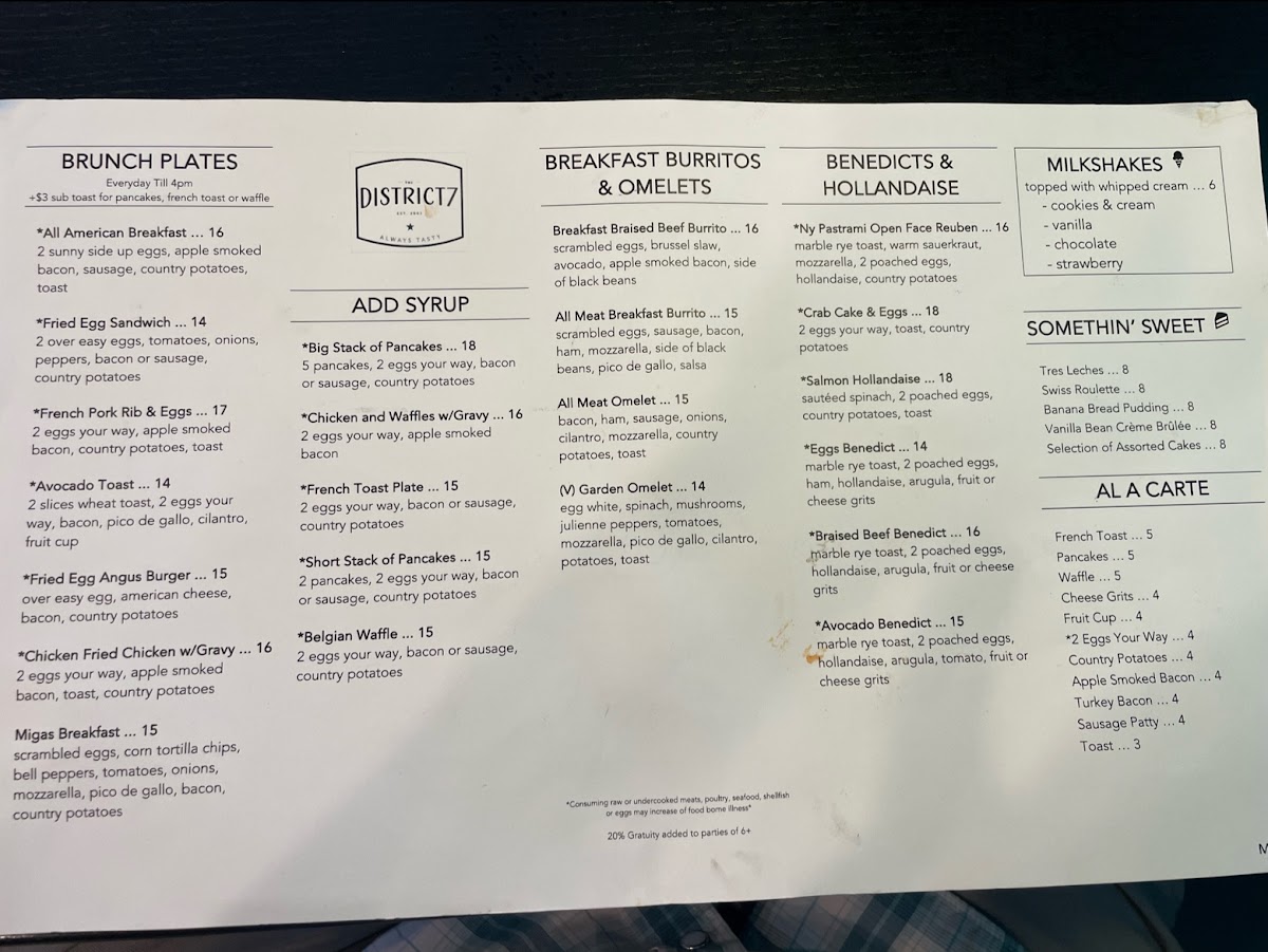 Welcome to District 7 Grill, a culinary haven nestled in the heart of Houston at 501 Pierce St. This charming eatery boasts a captivating retro vibe reminiscent of classic diners, making it an inviting spot for both breakfast and brunch enthusiasts. Renowned for its warm, friendly service and delightful atmosphere, it's a place where diners can indulge in flavorful dishes while basking in the cheerful ambiance.