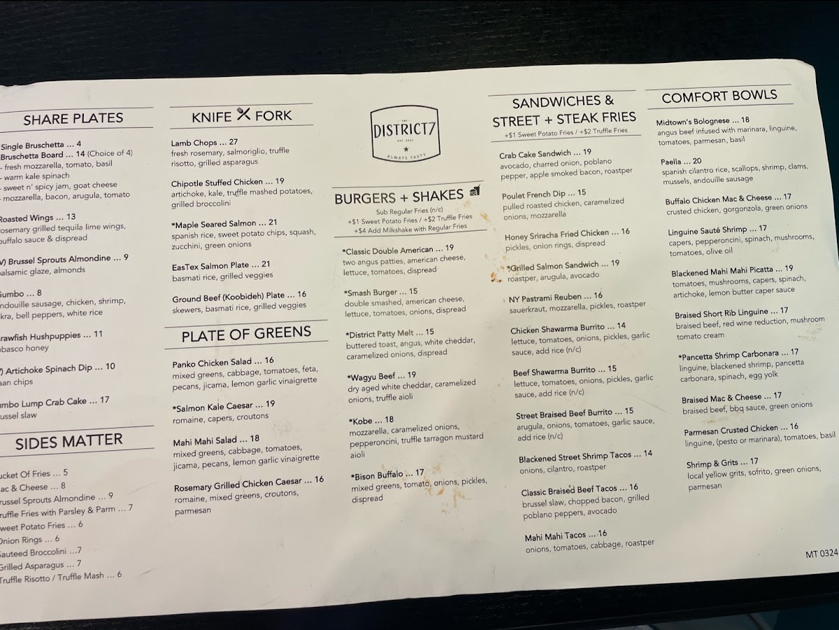 Welcome to District 7 Grill, a culinary haven located at 501 Pierce St in Houston, TX. This retro diner captures the essence of classic dining while serving up dishes that are as delightful as they are flavorful. Whether you’re enjoying a warm brunch under the sun or indulging in a cozy lunch with friends, the atmosphere creates a unique experience reminiscent of dining in a vintage railroad car.